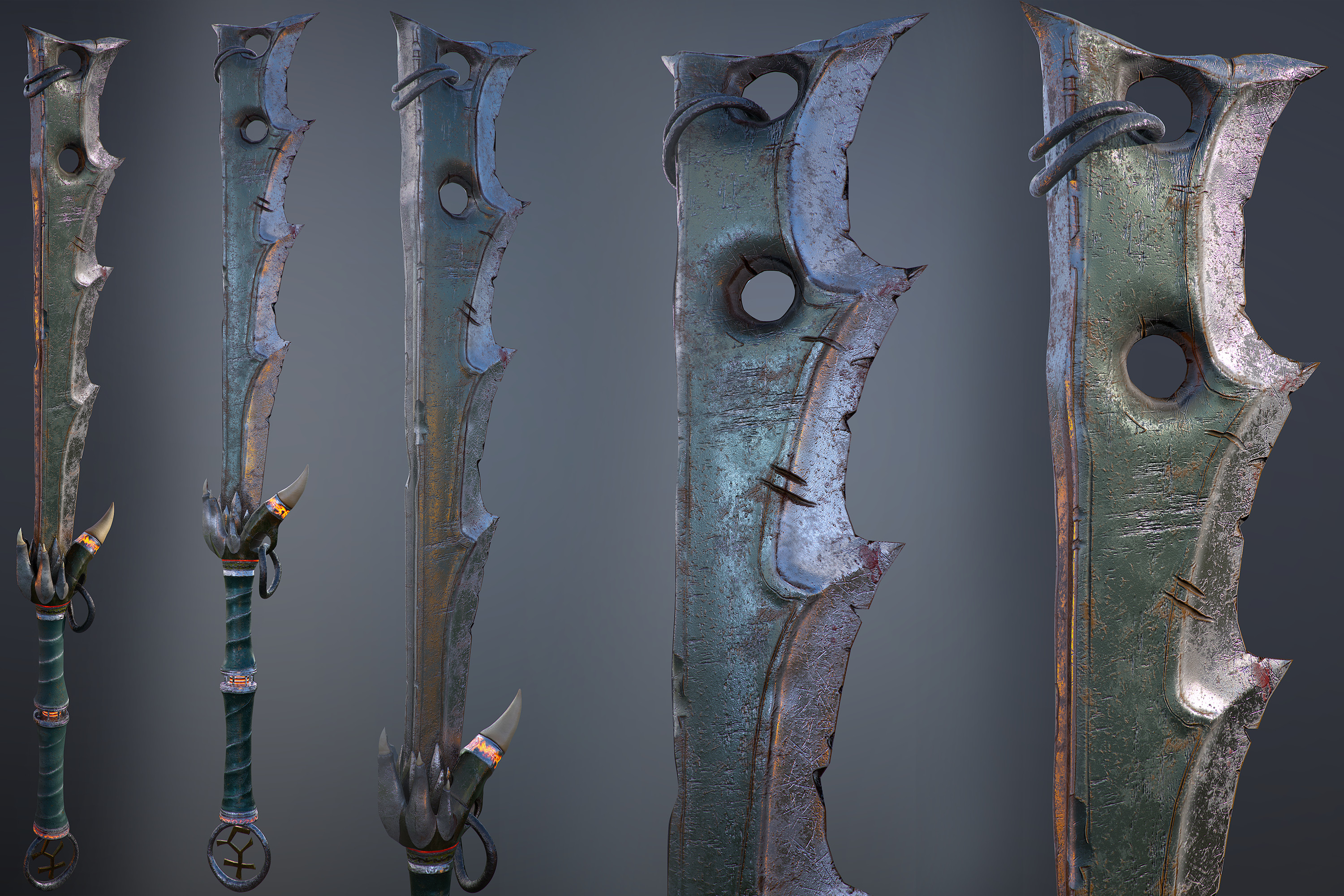 I originally wanted to study hard surface sculpting, but went into creating my own Bandos greatsword design. (The blade is the same, just a bit more roughed up).